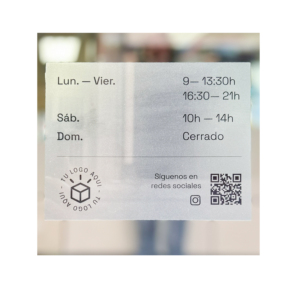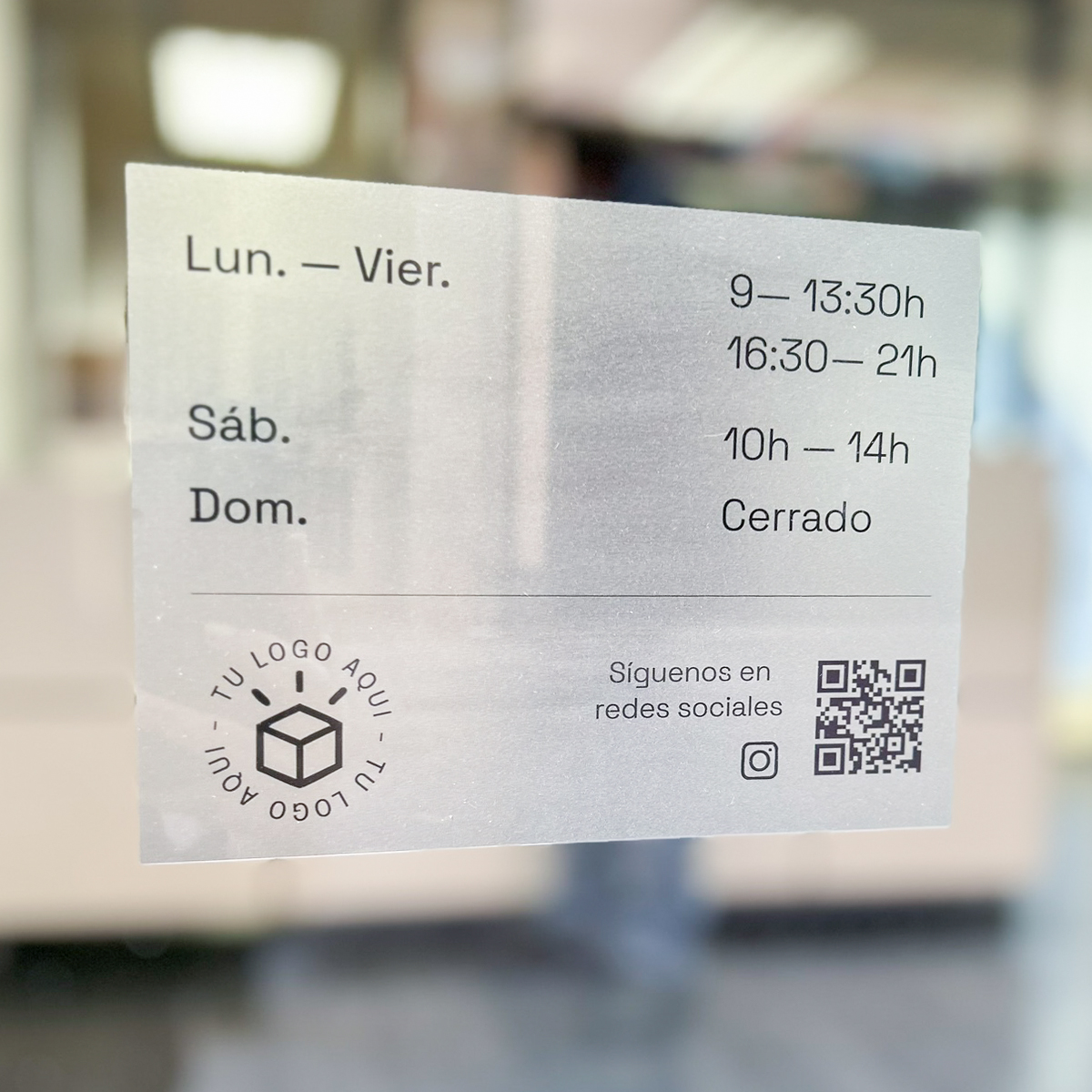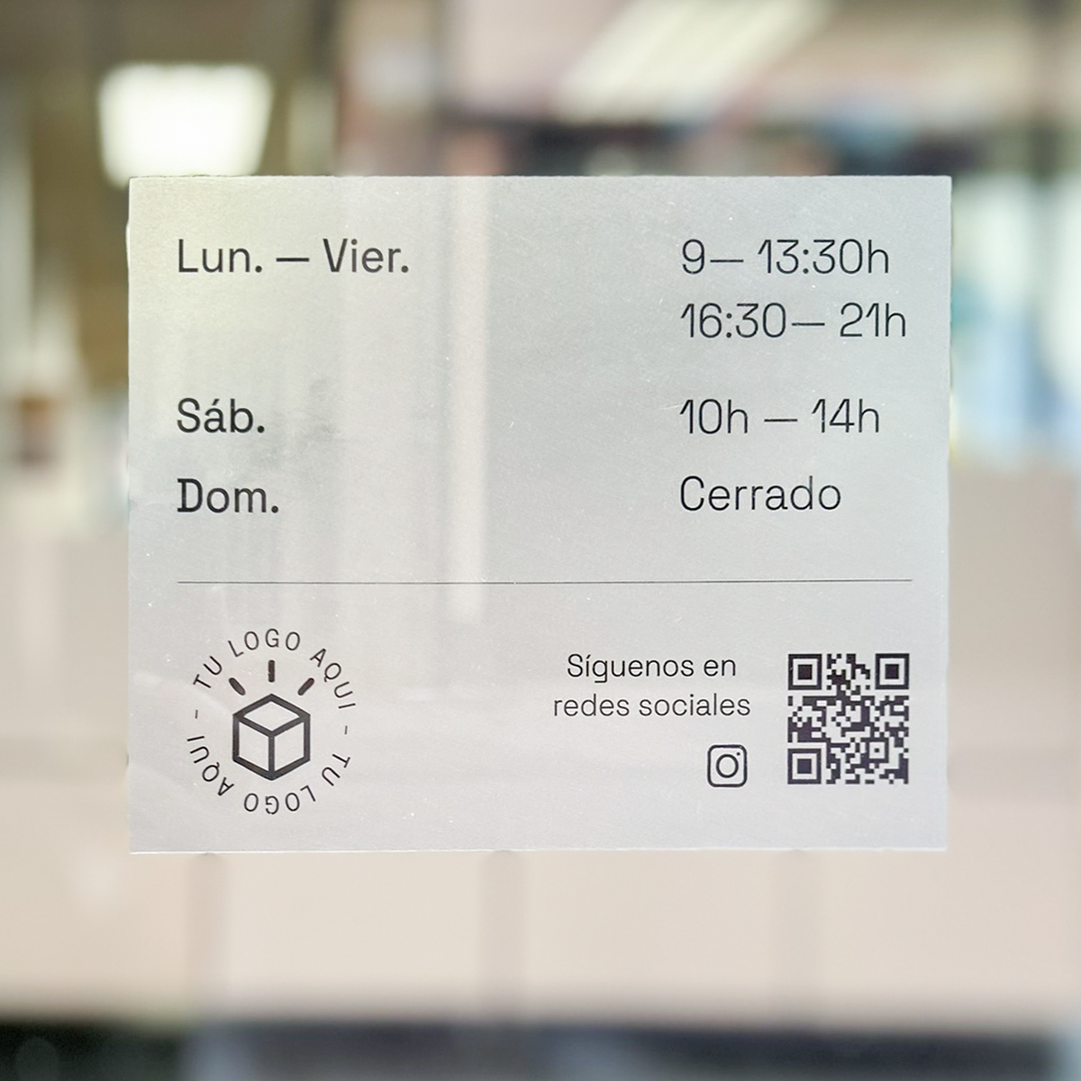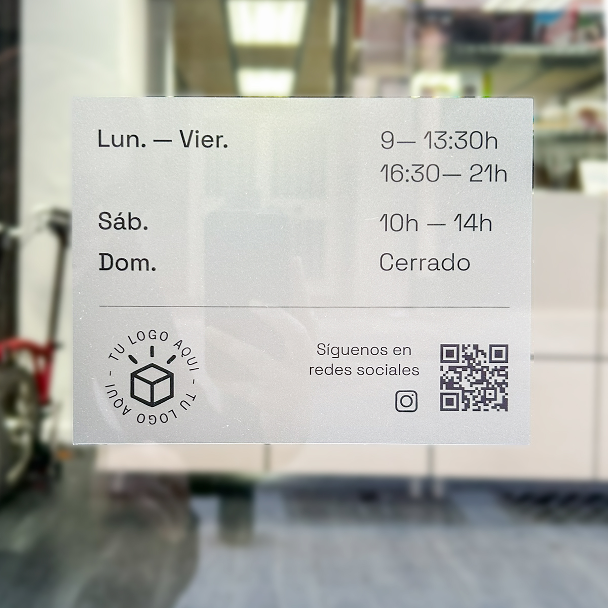 La personalización es uno de los grandes beneficios de este tipo de vinilos. Puedes incluir los horarios de tu negocio, añadir tu logotipo para reforzar la identidad visual y hasta incorporar iconos de redes sociales o un código QR. Así, tus clientes tendrán acceso rápido a tus perfiles en línea, menús digitales o promociones especiales. Esto convierte tu vinilo horario en una herramienta de comunicación moderna, funcional y 100% adaptada a tus necesidades