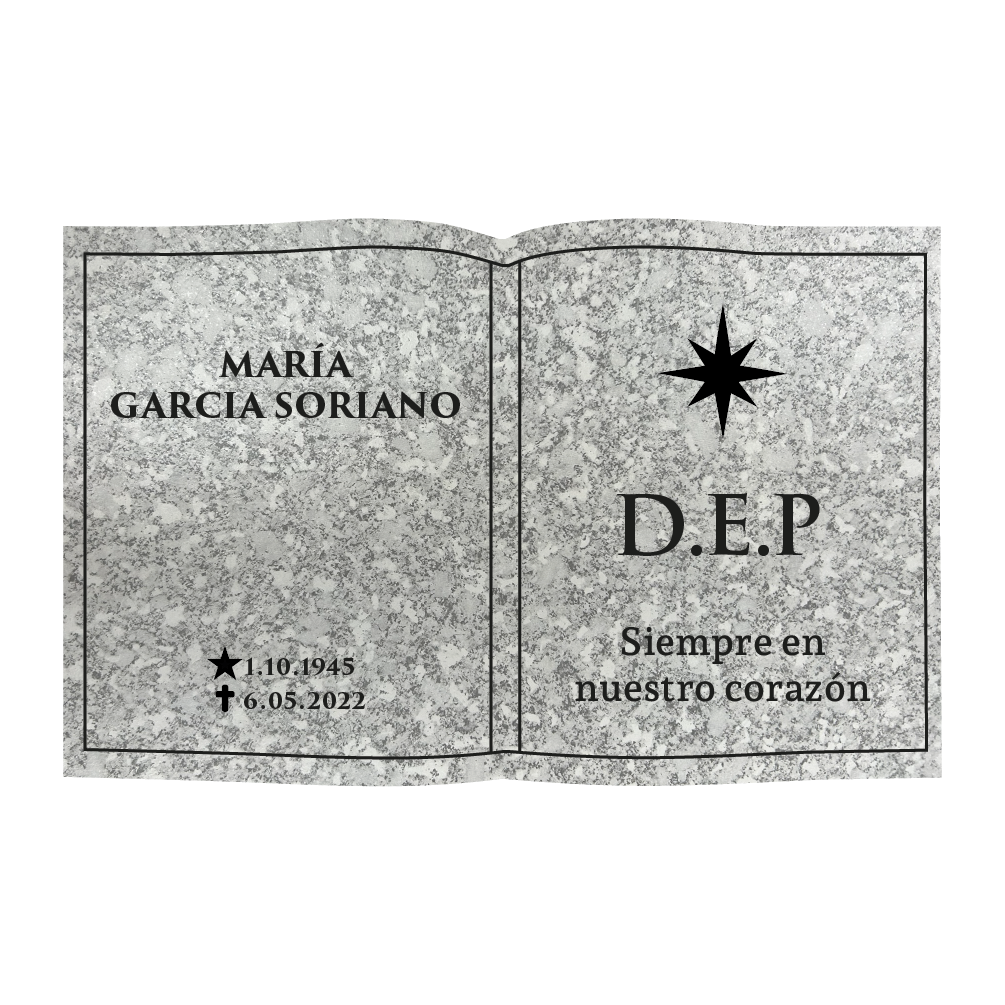 La placa funeraria DESTELLO LIBRO en imitación mármol es la opción perfecta para quienes desean un homenaje elegante y duradero sin invertir en mármol auténtico. Elaborada en un resistente polímero de alta calidad, esta placa reproduce de forma realista las vetas, el brillo y la textura del mármol clásico. Su acabado premium resulta visualmente indistinguible del material natural, ofreciendo una solución económica y estética para nichos funerarios y espacios de recuerdo.