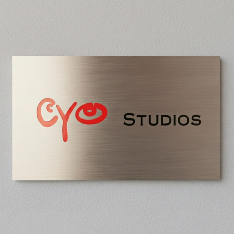 Por un lado, encontramos los rótulos metálicos grabados. Los materiales que se usan son acero inoxidable, latón y aluminio. Este tipo de rótulo es un rótulo grabado y pintado, ya que una vez se ha hecho la hendidura en el metal, ésta se rellena con pintura negra para que el contraste entre el fondo y el texto sea más vistoso y la lectura sea más sencilla.