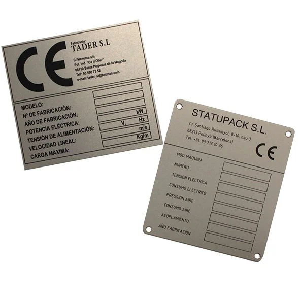 Nuestras placas de características estan fabricada en aluminio anonizado y serigrafiadas con 1, 2 o 3 tintas.