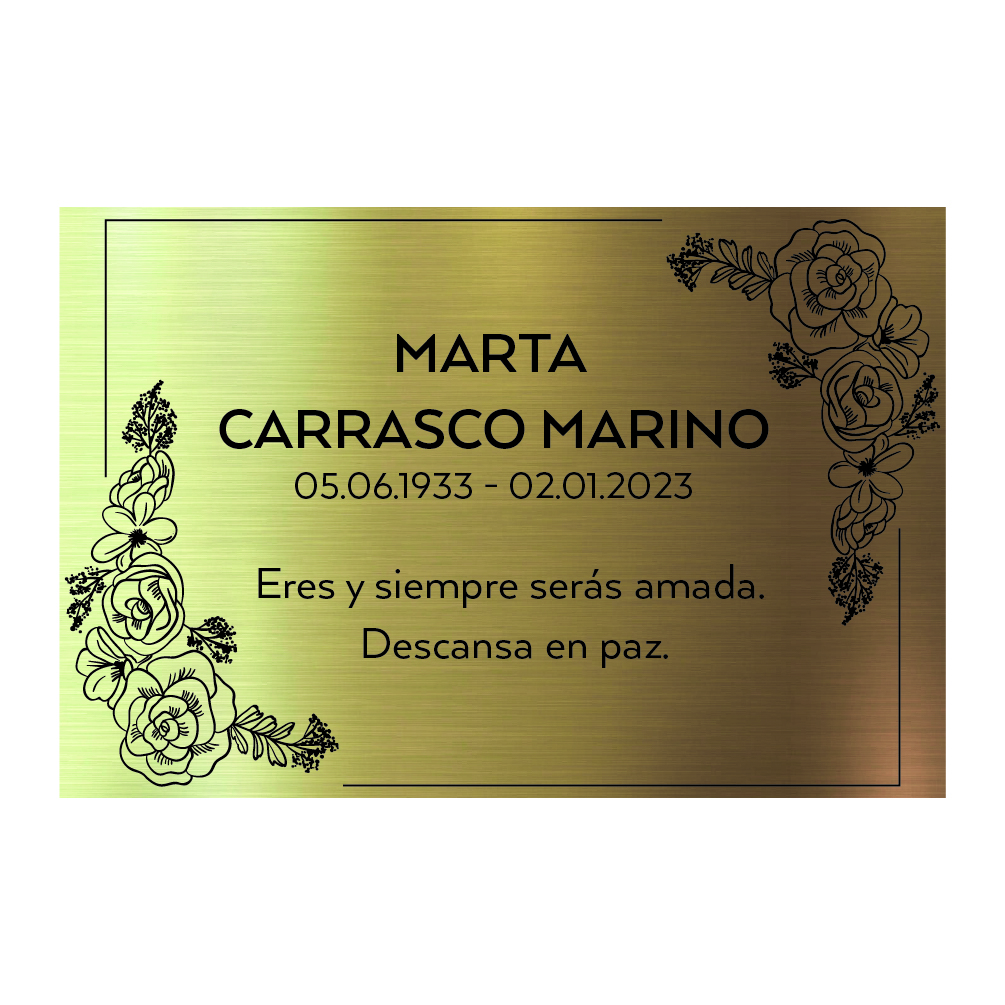 El modelo de placa “CLASICA” le permite cambiar el nombre del difunto, las fechas de nacimiento y muerte y la frase que usted quiera inscribir en la placa.