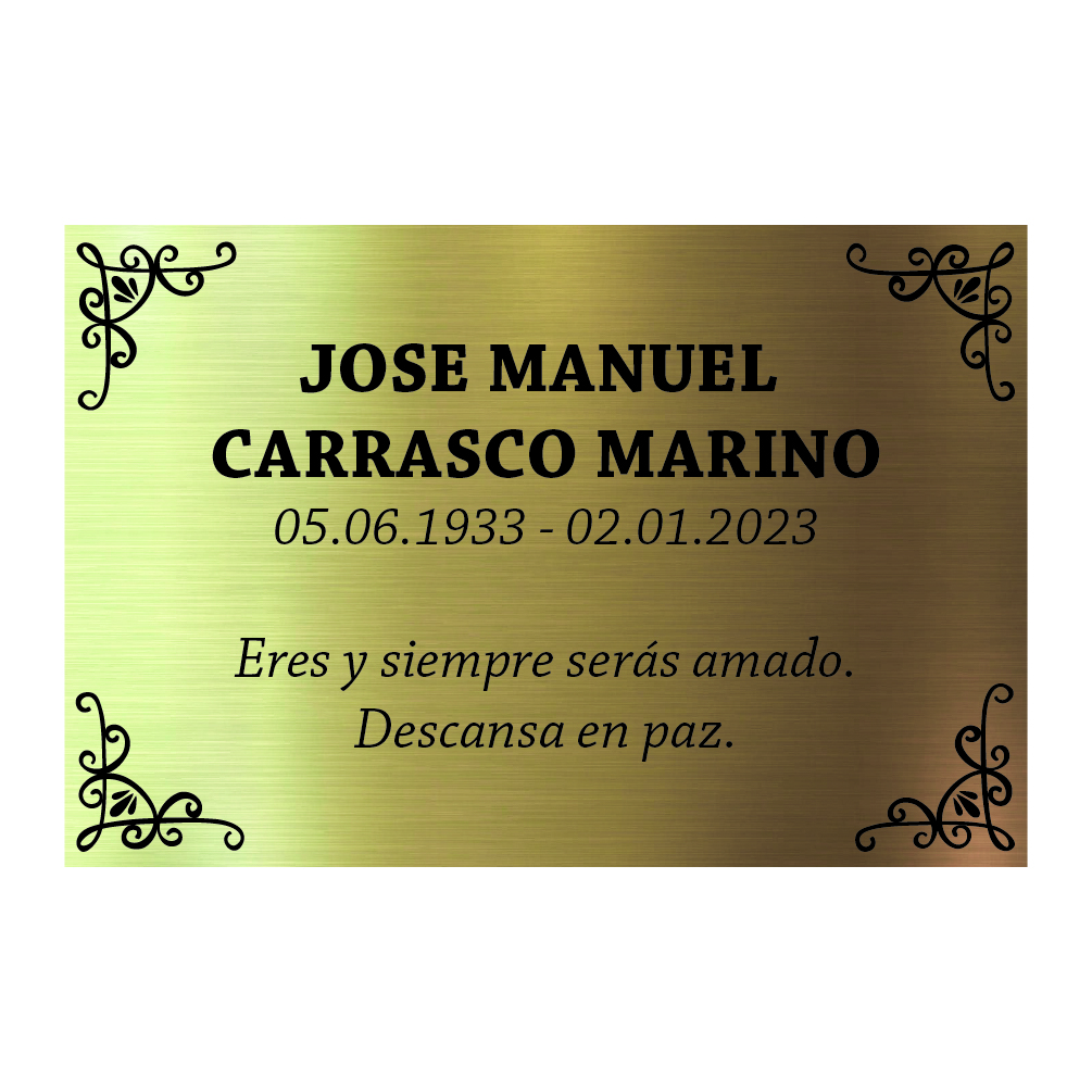 El modelo de placa “CLASICA” le permite cambiar el nombre del difunto, las fechas de nacimiento y muerte y la frase que usted quiera inscribir en la placa.