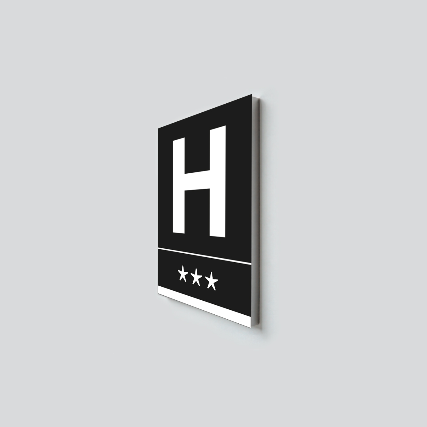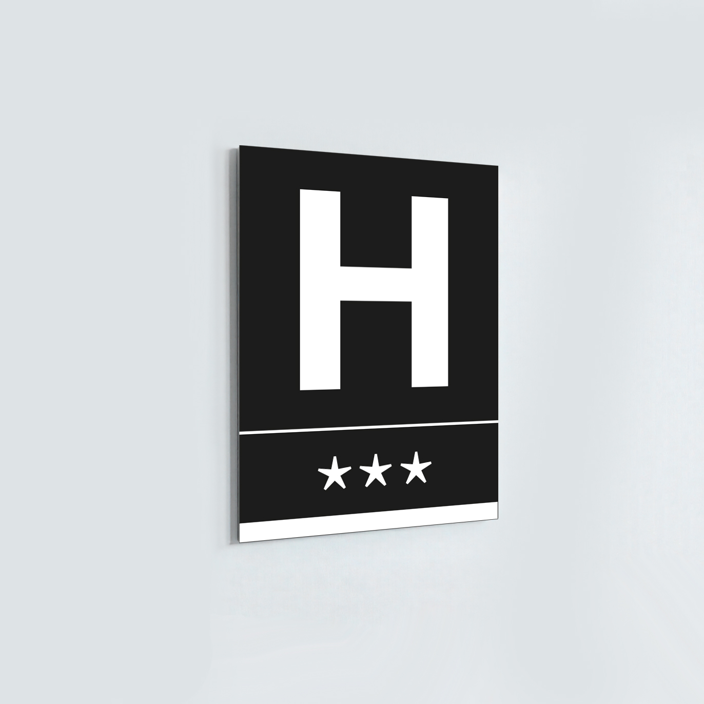 Els distintius d’establiments turístics de Catalunya segueixen un disseny únic i regulat, pensat perquè tots els allotjaments mostrin una imatge homogènia i fàcil de reconèixer. En el cas dels hotels, la placa té unes mides oficials de 30 x 22 x 2 cm., fabricada amb materials resistents a la intempèrie i amb un acabat d’alta qualitat. El disseny inclou, en el cas dels hotels, una H majúscula i tantes estrelles com tingui l’hotel. El fons pot ser en blanc o negre i la H i les estrelles serien del color invers.