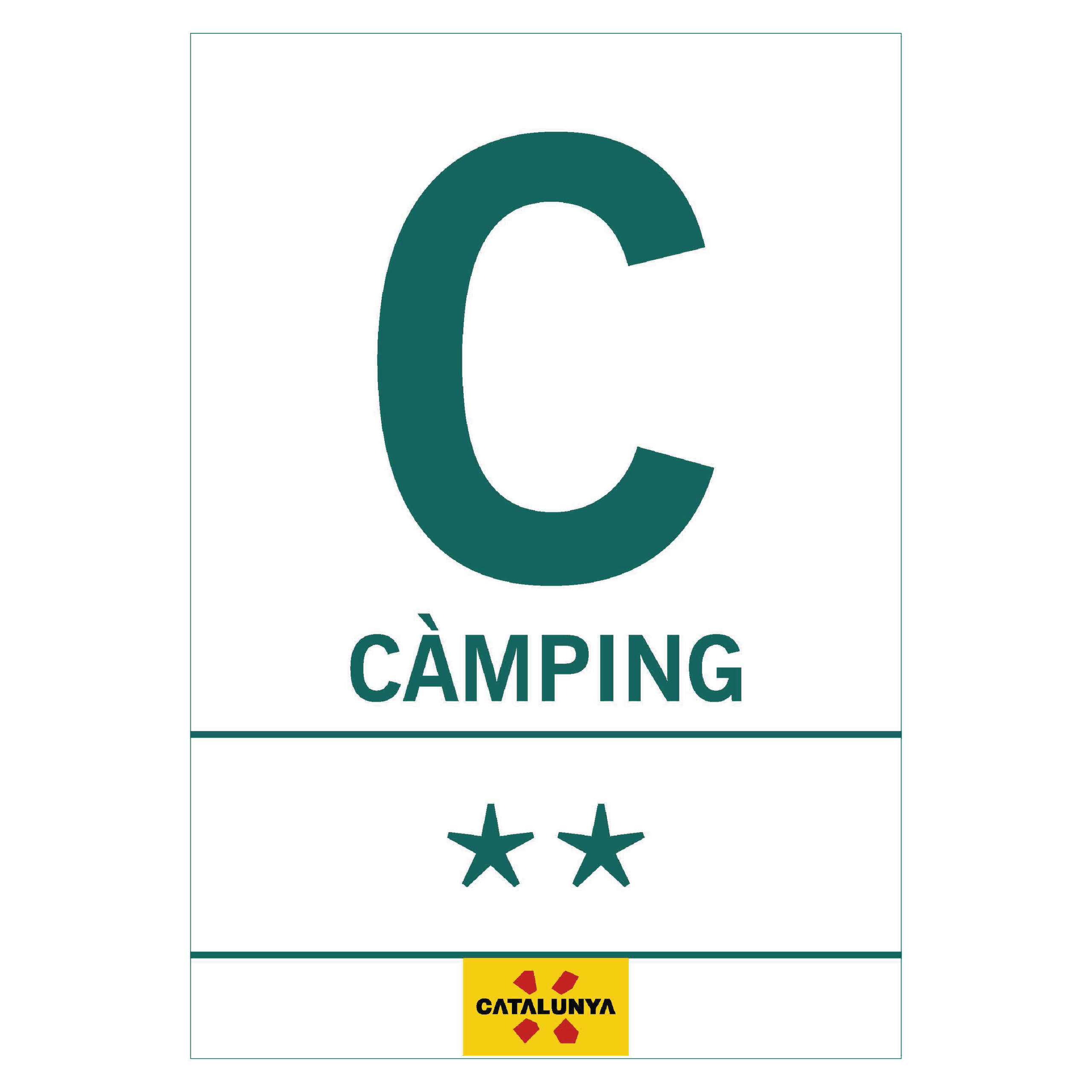 La placa consta d’una safata d’alumini forrada amb vinil imprès d’alta resistència, que assegura durabilitat i manteniment fàcil. El disseny inclou la lletra “C”, el nombre d’estrelles corresponent a la categoria del teu establiment, la paraula “Camping” escrita i el logo de Turisme de Catalunya. El fons pot ser verd o blanc, amb les lletres i elements en color invers, seguint la normativa oficial.